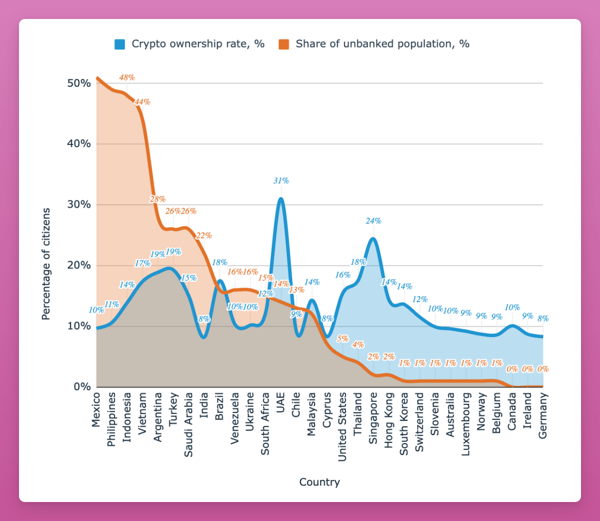 Countries with high unbanked populations have high crypto ownership. Crypto is filling a gap where tradfi banking fails.